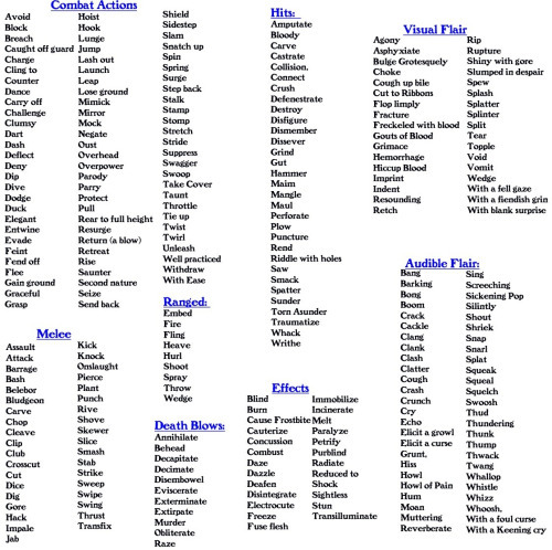 Combat descriptions