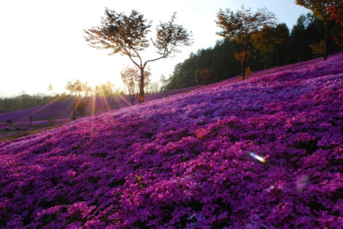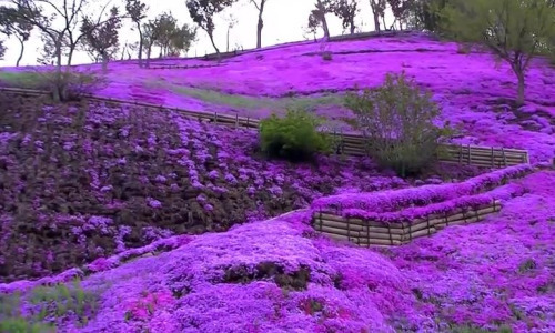 The Hillside of TakinoueThe vibrantly colored hillside of Takinoue Park in Japan is the highlight of the spring. The flower field covers about 100,000 square meters of the hillside and draws quite the crowd every year. The best time to see the flowers is from mid May through the beginning of June. Today, Takinoue Park is famous for its beautiful shibazakura but its history dates back to the early 1900s. The park’s iconic flower-covered hill was created when a number of youth group volunteers planted 1000 plants. (Source)