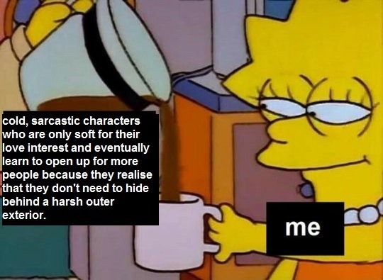 Girls who have crazy high standards for a love interest and when the douchebag bad boy comes along and thinks he’s going to seduce her with his edginess she just doesn’t even care. Bonus if she ends up completely platonic friends with him, or if she kills him one day. That would be fun.