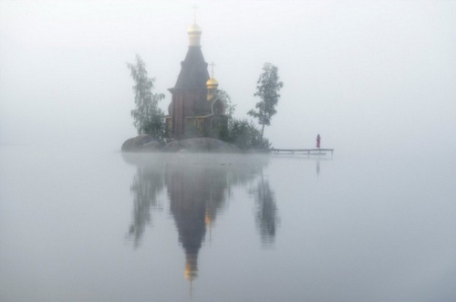 On a tiny island in a lake in Russia exists a tiny little church waiting to be discovered. It’s located near St. Petersburg, and close to the border with Finland. It appears in the woods, with its gold top, like something right out of a fairytale. The church was actually built in 2000 by an architect and university professor. It’s called the Church of the Transfiguration of Andrew. It’s named after the apostle Andrew, but the architect’s name also happened to be Andrew.