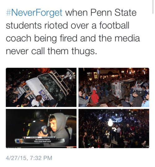 ahem, you should google search WVU riots. Just last year we had riots because we won a football game and people were, idk, excited? So they literally destroyed the town. Not the first time either, so I’m told. Riot squads were needed, cops shooting rubber bullets, kids flipping cars and pulling down lamp posts and getting pepper sprayed. The whole deal, it was no joke. All over some sports…