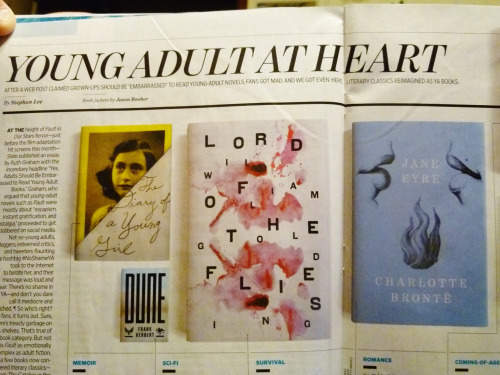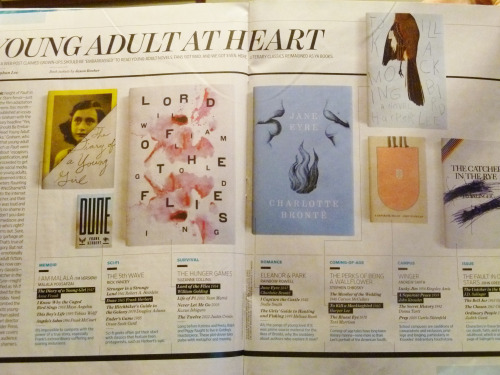 In this week’s issue of Enertainment Weekly,an article titled “Young Adult at Heart” discusses how many literary classics such as Lord of the Flies, To Kill a Mockingbird, and The Catcher in the Rye would most likely be classified as the Young Adult genre in today’s publishing industry because they feature young protagonists dealing with all sorts of plot lines, each with their own depth and thought.