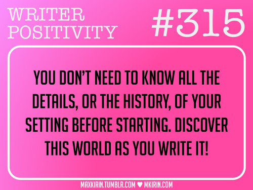 You don’t need to know all the details, or the history, of your setting before starting. Discover this world as you write it!