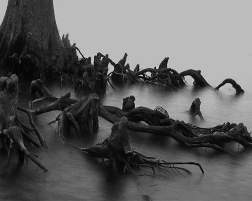 Anthropomorphism which is the recognition of human-like characteristics or form in animals, plants or non-living things. This tree, which can be found in the Outer Banks of North Carolina, has roots which have taken a human-like form.