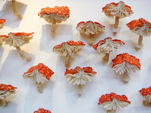 Look closely, these frilly mushrooms are made of books. Although they look like something Alice might’ve encountered during her adventures in Wonderland, they’re the creation of Chicago-based visual artist Melissa Jay Craig. Entitled (S)Edition, this delightfully strange installation features 99 books made to look like common Amanita muscaria mushrooms. Each bookshroom is made of cast and hand-shaped abaca, also known as manilla help, embellished with cotton rag paper.