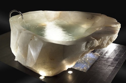 A bath tub cut out of a large single piece of Quartz Crystal.