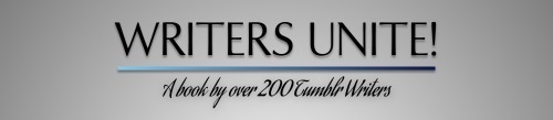 It is with great excitement that I finally reveal… WRITERS UNITE! A book by writers, and for writers. Made with the help of over 200 Tumblr Writers, compiled by yours truly, and with a cover by the fantastic Plaguesworth!