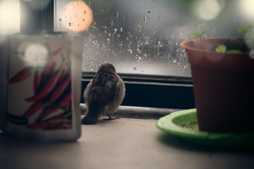 one stormy night my girlfriend saw what we thought was a dead sparrow below our balcony. he was barely breathing, covered in ants and completely blind.
