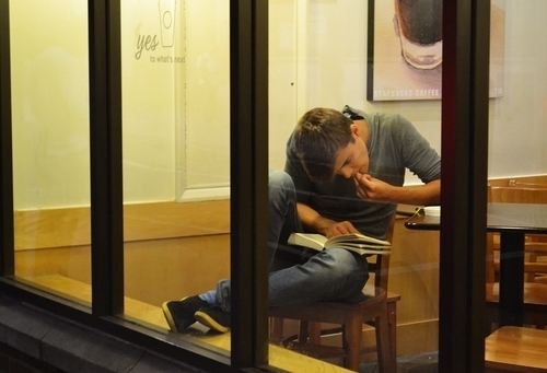 Being haunted by desire of authenticity I take stealthy photos sometimes. I am interested to know how people read when they think nobody’s looking. The world surely does not exist for them at that moment.