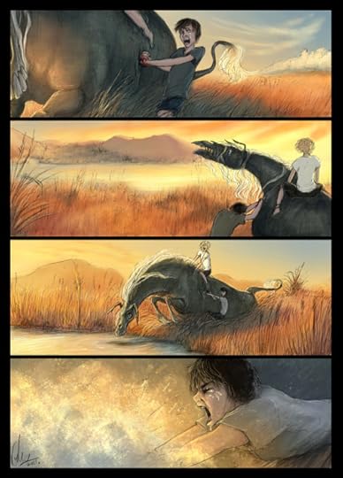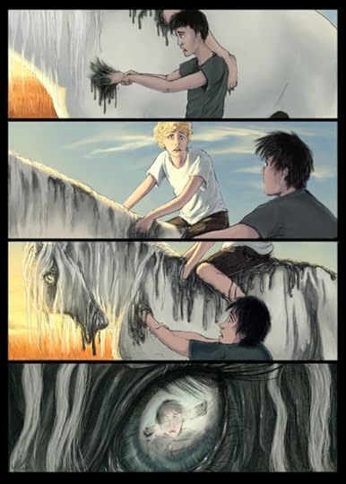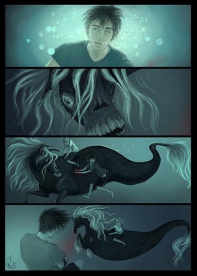 This horror comic is known as the Kelpie. This mythological creature is a shape-shifting water spirit inhabiting the lochs and pools of Scotland. It has usually been described as appearing as a horse. It tricks people into riding them and then drowns them. (Source: porceliandoll.deviantart.com)