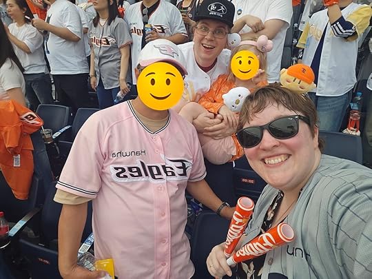 The experience of watching the game live was fundamentally different from watching it on the TV. The live experience was significantly more human. There were our fellow fans in the crowd, of course, and the interaction with them, but the chants also helped to reinforce the personalities of the individuals who were playing the game. On TV I struggle to know the names of the players because the displays, and the player’s jerseys, are all in hangul (which I’m embarrassed to say I still can’t read, but I’m trying!) In the stadium the main board displays the names in the Latin alphabet with pictures of each player, so I learned the names and positions much faster than I had watching from home where we usually identify players by their numbers or a distinctive feature (first baseman, and team captain, Chae Eun-seong’s glasses being a notable example).