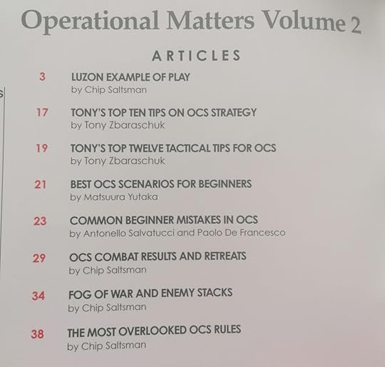 The table of contents for Operational Matters Volume 2. The example of play was particularly helpful for learning Luzon. The other articles were all interesting and helped me understand the system better without being strictly essential reading.
