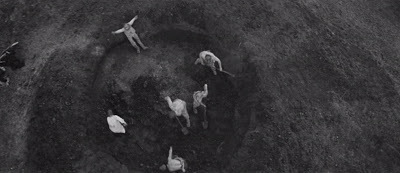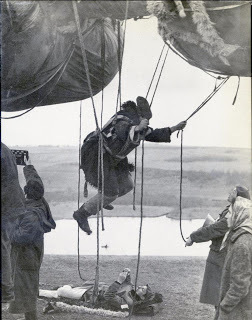 La scène est haletante. Il y a urgence. Des soldats attaquent de partout, tentent d'empêcher l'ascension. La ballon est une chose grossière, une espèce d'animal informe à la peau rugueuse, qui enfle et se cabre au milieu des cris et des échauffourées. On peine à trancher les longes qui le retiennent au sol. Une fumée noire et grasse pénètre difficilement dans ses entrailles. Enfin il s'émancipe, s'arrache, monte. On entend Yefim s'émerveiller, rire, se moquer des hommes cloués au sol, on le sent balloté entre la surprise et la joie.A la libération de cette forme répond, dans le film, une autre scène de "formation", celle de la cloche monumentale que fait construire Boriska, qui pourtant n'a pas hérité le secret de sa fonte. La cloche et le ballon forment pour ainsi dire les parenthèses du film. Deux formes creuses, nées d'une pure volonté, travaillées à l'instinct et dans la précipitation, chacune motivée par la nécessité de sauver sa peau (Yefim est attaquée; Boris risque la décapitation en cas d'échec). Deux formes qu'il va falloir ouvrir au sens. Et entre les deux, la vie de Roublev, ses stations de croix, ses doutes, ses renoncements, son entrée dans le silence puis sa décision de se remettre à peindre.