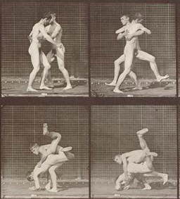 en décomposant non plus les corps mais le mouvement des corps (Marey, Muybridge…) et sans qu'on ait eu le temps de comprendre voilà qu'un hurlement traverse le ciel, les nouveaux amphithéâtres aux convulsés sont les tranchées de 14, avec leurs parterres et balcons de futurs mutilés, c'est le sanglant et boueux théâtre des opérations moderne, puis bien sûr ça continue, les corps exultent à leur insu, se tendent sous les coups de baguette magiques des poursuites lumineuses, voilà Olympie transfiguré par Riefenstahl sous le regard des dieux du stade de 1936, puis tout s'annihile dans un bûcher sans précédent, les spectateurs abasourdis et décimés, projetés sur les cendres des camps nazis ou dans les ombres du flash atomique, que va-t-il advenir, quelle scène prendra la relève, on le saura assez vite, car voici les parcs d'attractions, qui germent et s'étendent, voici les centres commerciaux qui pullulent et dévorent, la consommation succède à l'extermination, et l'on passe sans même s'en rendre compte de Disney World à Cap Canaveral, Saturn V achève la trajectoire des V2, mais les masses sont là, toujours au rendez-vous, de plus en plus hébétées, et la musique vient électrifier tout ça, vient faire danser au son du LSD les nouveaux prétendants au rêve somnambulique, mas déjà on quitte