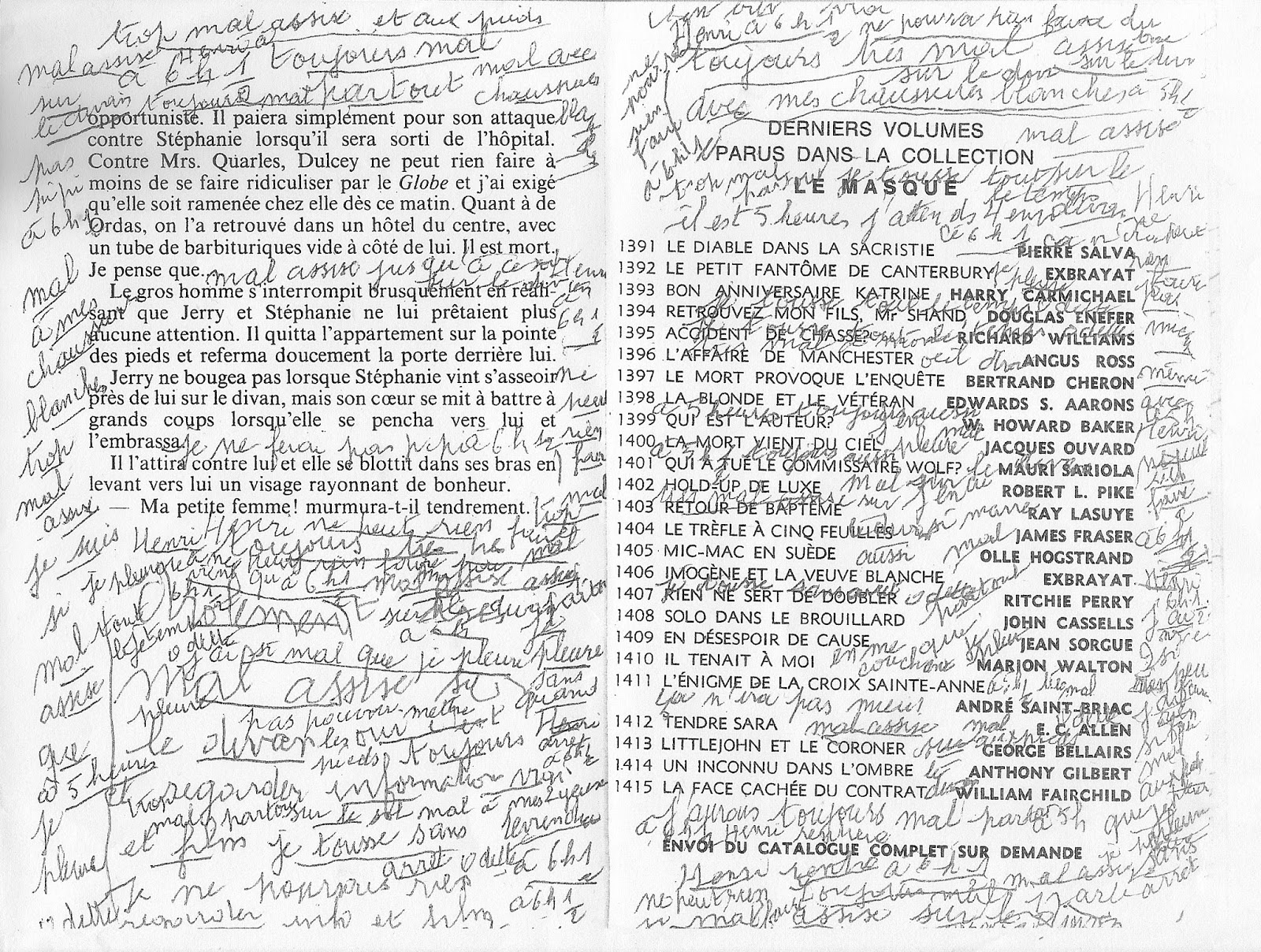 Du fait des massacres survenus récemment à Paris, et suite à l'état d'urgence décrété dans tout le pays, le Clavier Cannibale ne voit aucune raison de cesser ses activités. Corollaire: La littérature n'est pas menacée: la littérature est une menace. Entre les lignes : cette expression, Colette Peigné, l’auteure de L’interlocutrice, l’a posée un jour à sa mère, mais elle ne pouvait se douter qu’elle en aurait un jour une explication éclatée, improbable — « vibratoire ». C’est pourtant ce qui s’est produit le jour où, passant en revue les affaires de sa mère, décédée après plusieurs années sous le joug cruel d’un Alzheimer, elle s’aperçoit que les livres que lisait sa mère, des romans policiers parus aux éditions du Masque – 23 au total, même s’il y en eu plus – portent en eux, entre leurs lignes, des notations manuscrites. Odette – la mère de l’auteur – sentant la mémoire et le langage lui échapper, se servait de ces récits populaires pour laisser des traces, recourant aux mots des autres, qu’elle commente, souligne, auxquels elle répond aussi, afin de continuer à exister autrement, d’insister en secret.L’interlocutrice est d’abord le livre d’improbables retrouvailles, celles, posthumes, entre la fille et la mère à travers le legs de tiers livres :