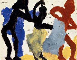 « Tu couvriras la feuille sans plus rien savoir que le bruit de la plume qui écrase l’air. Tu grifferas. Tu respireras bruyamment. Tu seras seul. Tu regarderas l’ombre d’une branche dévorer le tronc qui la porte. Tu te nourriras de croûtes de pain. Tu partiras à la nuit tombée. Tu reviendras dix jours plus tard. Ou bien tu ne peindras pas. Tu laisseras la faim grandir en silence. Tu lui offriras des prises secrètes, des trophées inutiles. Tes os grésilleront sous le poids du vent. Tu auras mal. Tu ne sentiras rien du tout. »Ici, le temps du futur se veut moins tentative d’extrapolation que dépliage d’un possible, et Berlottier ne cherche pas à pénétrer la conscience de Soutter mais plutôt à créer les conditions de sa survie, à nous rendre à la fois tangible et incarnée l’obscurité tenace dans laquelle Soutter s’enfonça, jusqu’à la cécité qui ne l’empêcha pas de continuer à peindre, avec les doigts, et c’est sans doute dans la « description » – mais le mot est impropre, il faudrait plutôt parler de « relance » – des toiles de l’artiste que Berlottier réussit à nous faire voir son œuvre par la pure intellection de l’écriture, allant jusqu’à s’immiscer entre les silhouettes peintes :