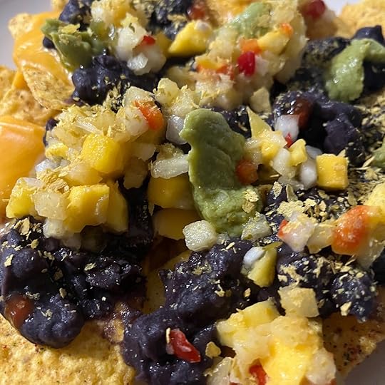 Cool Ranch Doritoestwo slices organic American cheeseSam’s Fresh Pineapple SalsaSpicy Cuban Black BeansAvocado CremaNutritional Yeast600 calories. 20 grams protein.