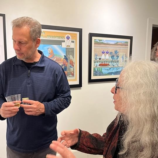 Today is definitely one of those times. I don’t have it in me to write two separate pieces. I’m not even sure I have it in me to do one that conveys the sense of enthusiasm and the nature of the art I saw last night at the opening reception for “Let’s Play” at Connexions, the art exhibit curated by Maryann Riker, who has participated in Parisian Phoenix Publishing’s anthology Not an Able-Bodied White Man with Money and provided custom art work for the covers of Twists: Gathered Ephemera and The Phulasso Devotional: Engineering the Warrior Priest for Dark Times.