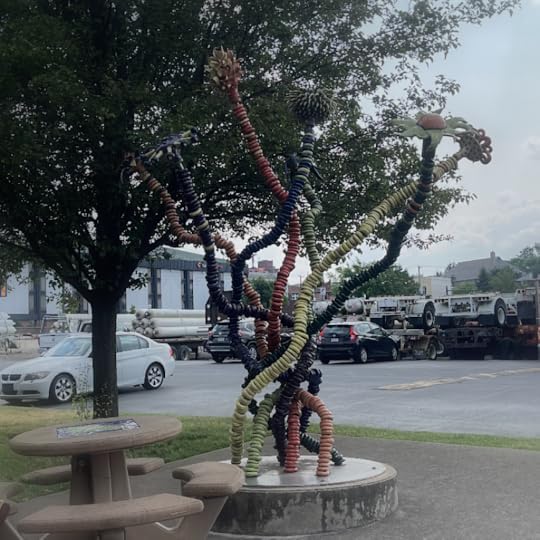 Joan herself is not a tall person, so I wonder if the choice to work with recycled toys in a small, plastic world has more to say than she realizes. One of these days we might find Joan inhabiting her plastic universe with Mr. Tiger Pants and his friends.