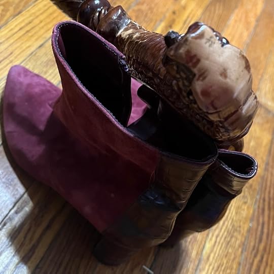 My doctor arrived and immediately called me stylish, not knowing I picked my clothes to keep my weight the lightest possible and when she noticed my red boots, I had to let her know that they were on the floor next to my desk and I didn’t have it in me to look for other shoes. (But later in the visit, she acknowledged how my choice of boots also makes walking easier and the ankle height of the boot gives me more support. All part of why I love boots!)