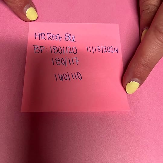 Then, they took my heart rate and my blood pressure. Both were really high and would not come down.