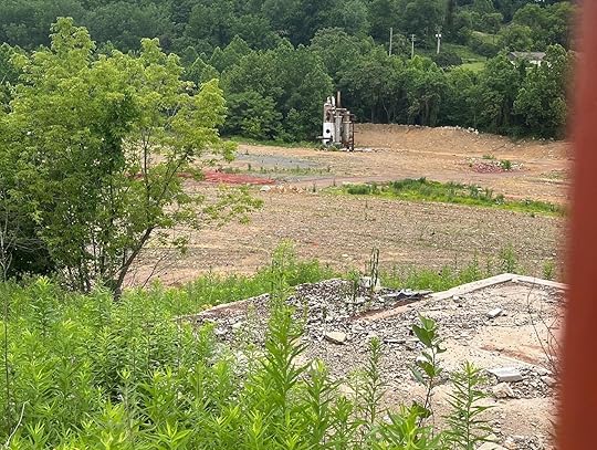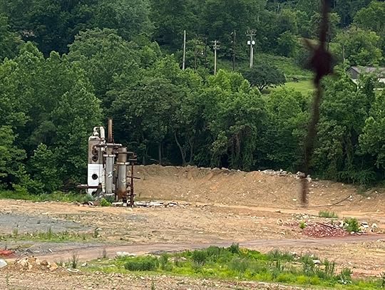 There is an industrial site about a mile from my home, probably a brownfield. Everything on the property has been demolished, except for a mega-furnace of some sort, metal and concrete, far across the field like a spaceship from a 1940s science fiction movie.