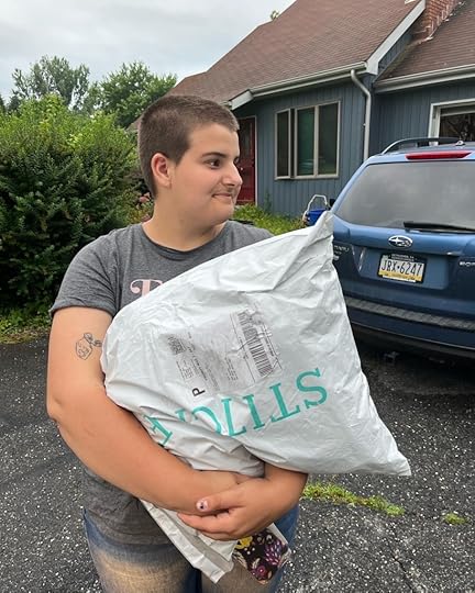 Joan had never seen the large Stitch Fix bag and I was more than a little impressed that whoever packed them got them in there. And the postal carrier got it into Joan’s mailbox.