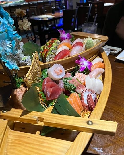 And for her birthday dinner, the teenager wanted to invite her father to Jasmine Sushi and Thai, where they always do such a magnificent job on presentation. My estranged husband had never had sushi in a restaurant before, so this was very fun.