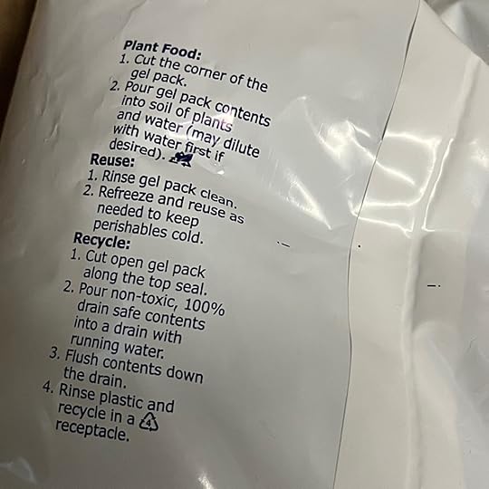 Our latest Hungryroot box came, and I realized for the first times in all these months of Hungryroot that the reusable nitrogen ice packs are plant food. Now I can’t wait to pour that on our compost heap.