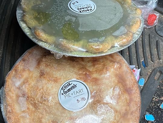 I receive their weekly email and saw their “freezer section” of leftover discounted pies included a steak and Guinness pie and a matcha custard pie. A meal inspired by two of my favorite drinks.