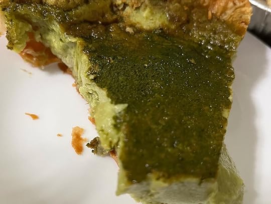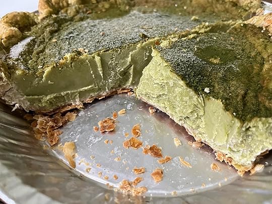 I couldn’t even wait for the matcha custard to thaw. I sawed at it with a knife, broke it in pieces with my hands and microwaved a slice for 30 seconds. It was delectable.