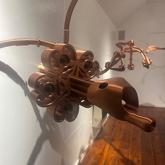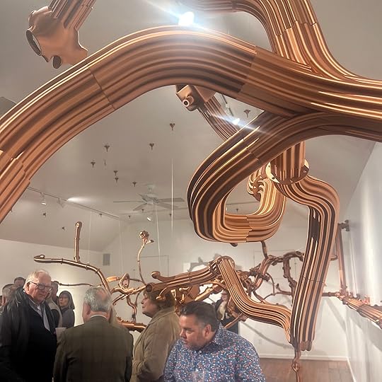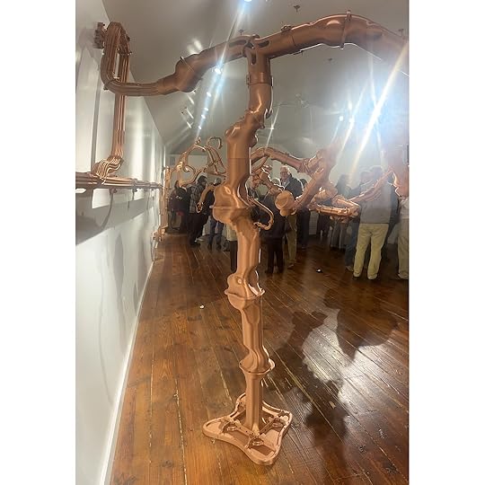 We had some wine and snacks and traveled with the piece, following the piping throughout the room and marveling at the different connections and ends.