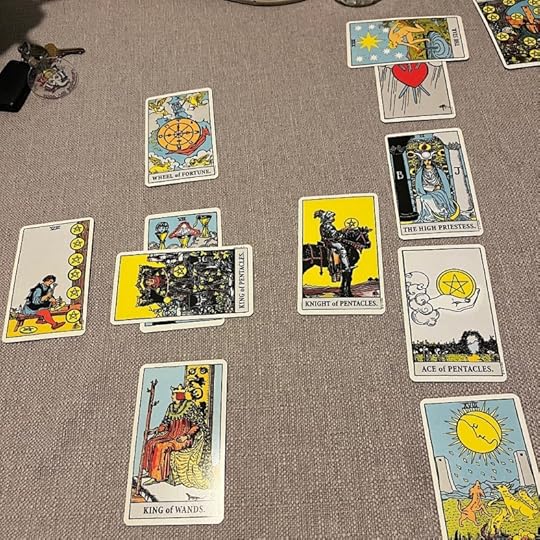 Her turn arrived. The reader was Suburban Mom Medium and she had at least two decks with her. The one she used for us was The Woodlawn Wardens Oracle Deck. I fell in love with this deck. She told the Teenager that she was sorry that in the past The Teenager didn’t feel emotionally and/or physically safe, that the present has a lot going on but if she’s patient, good things are happening.