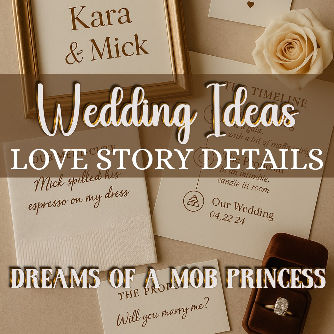 For a glimpse of what that might be, check out my wedding trends themed blog posts and the mafia books they’re most likely linked with: