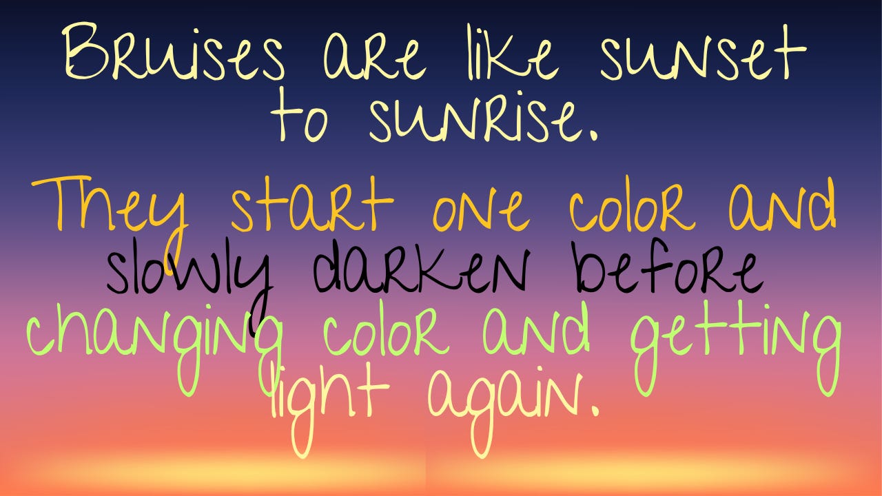 4. Bruises Are Basically Mood Rings for the Healing ProcessNope, bruises don’t show up purple in five seconds. Here’s a rough timeline for bruise drama with common overlaps: