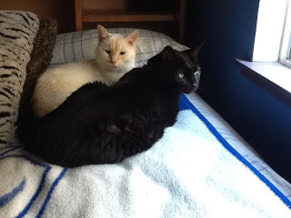 Sorry. It's one of those weeks. The only things I'm thinking about are largely negative and I just don't want to put that out in the universe. Instead, I bring you a picture of my cats. They are not doing anything funny. They are old men, but I still think they're cute. Here they are:
