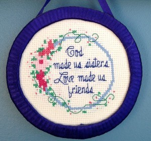 Just looking around my office there is evidence of my girlfriends. The cross with “faith, hope, and love” painted across it in bold colors from a friend who has encouraged me for years in ministry. The note tucked inside a devotional from my Bible study teacher to remind me of her loving guidance. A book written by one of my mentors used to instruct my children in our American Christian heritage. A wall hanging hand-stitched by my sister (my best girlfriend) that reads, “God made us sisters-love made us friends.” The scarf around my neck from my “birthday twin.” The email I received yesterday from a girlfriend who knew I was looking for a seasonal cookie recipe for my blog. Out the window, I’m reminded daily of the girlfriends (and their husbands) who planted a tree in the backyard in memory of my dad. All touches of love from women the Lord has purposely set in my path.