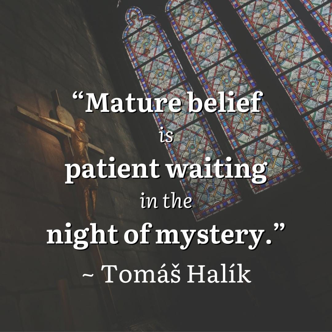 Halík, who I quoted earlier, goes on to say, “Mature belief is patient dwelling in the night of mystery.”3 If we truly have a solid faith in God then we are more than capable of sitting with the disruption of any uncertainty others have. In fact, those who must always assert a statement of faith to someone's doubts in the midst of suffering are probably showing their own lack of faith.
