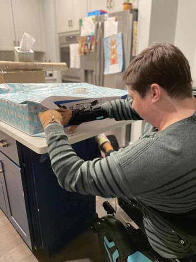 Since we have two birthdays in December plus Christmas, Charlie is busy wrapping gifts, and she is again overcoming her physical limitations. She is doing a beautiful job wrapping the presents! These are simple but incredible milestones for us, and we celebrated every single step in her recovery!