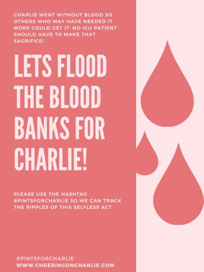 Please Share this image on your social media pages, and be sure to use #pintsforcharlie, you can go to any blood bank or drive in your own community! Together we can raise thousands of #bloodpints!