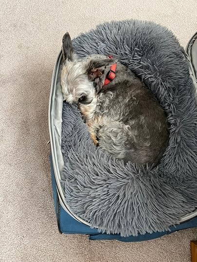 Brady does in fact sleep in a suitcase but for a different reason. When Brady first came to live with us my husband, Joe, did a lot of travel for his work. Brady wasn’t happy when he left and clearly thought Joe would take him along if he slept in his carry-on suitcase. My husband’s carry-on became Brady’s bed, and we bought another one for Joe.