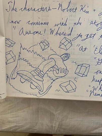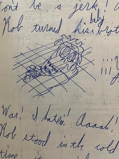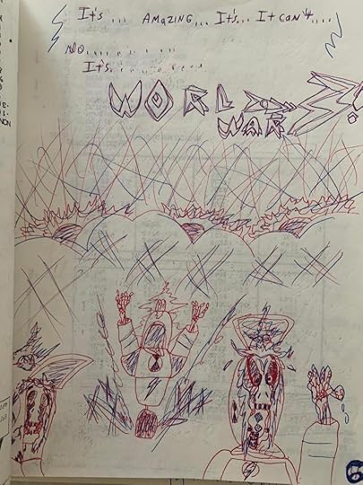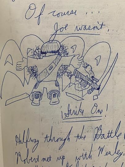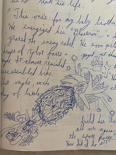 Anyway, Robert and his friends get drafted into the war against robots (I think I threw aliens in there too, because why not?), and everyone gets killed except him. Then he runs into a mad genius inventor, since I guess these kinds of stories always need one, like Dr. Howard in the first book, and they build another Action Bike out of the spare parts of the broken robots they destroyed. I suppose even then I realized that my characters were just kids and couldn’t invent things completely by themselves; they needed help either from an adult, a genius inventor, or both.