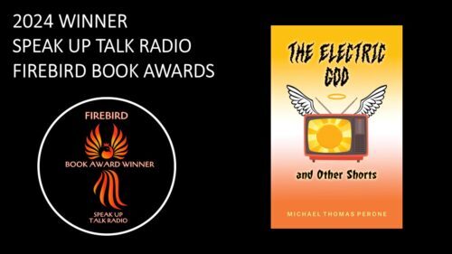 The Electric God and Other Shorts just won its first award! It was recently announced that the book won First Place in the category of Short Stories at The 2024 Firebird Book Awards! Although I won First Place previously at the BookFest Awards, this is the first time one of my books won First Place in this particular competition. (I won Second Place before.) The Firebird Book Awards are presented by Speak Up Talk Radio. The awards help fund homeless shelters with books, pillowcases, and other needed supplies. I’m honored not only to have won again but to have contributed to this most noble charity.