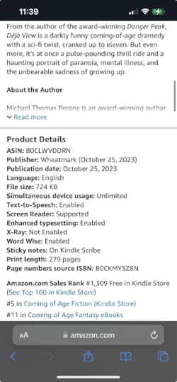 Currently, the most recent version of Déjà View is only available via paperback on Amazon. The eBook will be available in a week or so, and Barnes & Noble will acquire it a little after that, if history is any guide. If you click on “Read sample” below the cover on the Amazon page, you’ll see the new cover with the award seal, as well as a short sample of the changes that were made so far, including deleting the apostrophe in “Publisher’s Weekly” on the first page. Again: Oops!