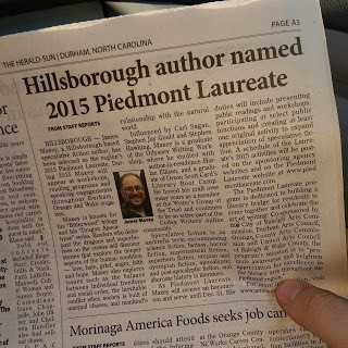 This week, I turned in my final blog post as the 2015 Piedmont Laureate. Whew! It's been a blast, but there's no question it also ate into my writing time far more than I had anticipated. I did close to thirty events in 2015, counting readings, workshops, signings, panel discussions, dinners, and speaking to government boards. It turns out that constantly talking about writing satisfies a lot of the parts of the brain that ordinarily need actual writing for stimulation.