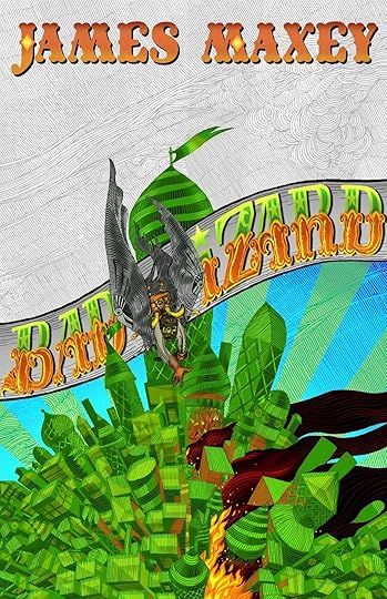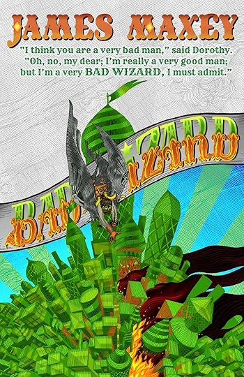 Jeremy Cavin's amazing cover revealed in its full glory. You should be able to click on the above image to see a higher resolution version of it. Bad Wizard is on track to be available for sale on October 1. If you're interested in reading the book prior to publication in order to review it, please email me at james(at)jamesmaxey.net. Line edits are still being finalized, but I can provide an advanced review copy in an electronic format of your choice. Advance readers will get rewarded with a Bad Wizard poster! The story: In 1894, Oscar Zoroaster Diggs walks into Topeka with every pocket of his suit stuffed full of high quality emeralds. Overnight he's the richest man in Kansas. With his winning smile and gift for gab, he's quickly befriended by the governor and appointed as one the state's US Senators. While in Washington, he befriends Theodore Roosevelt, and when Roosevelt becomes president, Diggs become the Secretary of War. Now, in 1904, he's overseeing the construction of a fleet of zeppelins to be used to spread democracy to the far corners of the earth. One woman knows Diggs true goals, however. Her name is Dorothy Gale, a reporter for the Kansas Ear. She's hounding Diggs with articles showing him to be a corrupt conman. She has a talent for getting her hands on sensitive documents to expose his shady dealings, but so far Diggs hasn't been harmed by her charges of corruption. In her quest to expose the truth about Diggs, Dorothy is hampered by her inability to tell the full truth. She alone knows the truth of how Diggs acquired his fortune -- she met him ten years ago in Oz, where he ruled as the Wizard. She also knows his true purpose for building the fleet of airships -- he plans to return to Oz to rule once more. But she can't go to her editor and explain that Diggs is planning to invade an invisible sky island ruled by witches. Nor can she explain that she gets her sensitive documents not from connections in Washington, but by using her magic silver slippers to travel cross country in the blink of an eye. Dorothy's plans to thwart Diggs are complicated when he kidnaps her to take back to Oz as insurance that the Scarecrow will hand over the throne of the Emerald City. When she escapes his clutches in Oz, she must navigate a dangerous magical landscape in order to rescue her the Scarecrow, the Tin Woodman, and the Lion. But even when they are finally united, will they be too late to stop Diggs from conquering the Emerald City with his aerial navy?