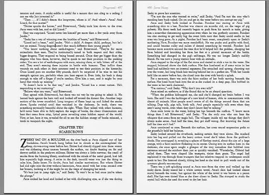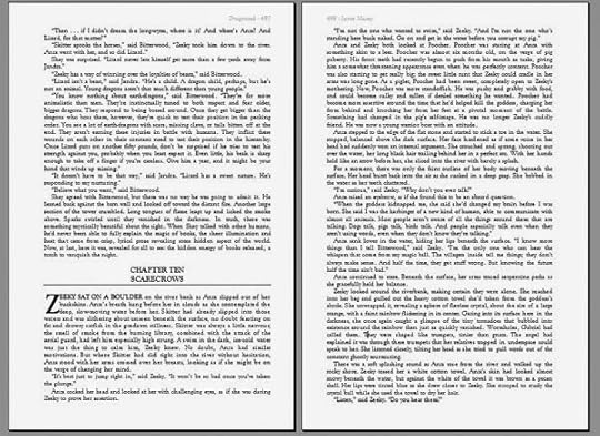 I had hoped to spend October working on a new novel. Alas, there have been some rather dramatic turns of events unfolding in my publishing life during September that have forced me to switch from my writing hat to my publishing hat. Bitterwood has sold as a paperback from Solaris books for seven years now, going through four printings. But, eventually I knew the day would come where the sales would dwindle to a point that further printings would be unlikely. On my last statement, Bitterwood's paperback sales had fallen enough that I made the decision to revert the rights and put out my own trade paperback editions available as print on demand books. I'm kicking things off by releasing a complete collection of all four Bitterwood novels (the core trilogy plus Dawn of Dragons), plus "Tornado of Sparks," the short story set in that world, plus "Building a Better Dragon," an essay I wrote explaining how I designed my dragons to be different from the standard fantasy beasts yet still recognizable as dragons. Bitterwood: the Complete Collection, is just a few words shy of half a million words of fiction. It's fitting into book 800 pages long. Formatting the book for print has proven... challenging. For starters, finding a font that was easily readable at the size needed to cram in all those words into 800 pages was a challenge. Garamond's small letters were too small, and Time's could be tweaked to fit, but there's something about Times that looks like a business report more than a work of literature. I finally settled on Goudy Old Style at 10 points with a line spacing of 11 points. This is somewhat dense, but still relatively easy on the eye. This summer, I read Don Quixote, a book with a similar word count, and it used a much smaller font, so I don't think anyone will get eye strain from the book. Still, it wasn't just a matter of pulling down and font menu and picking what looked good. I tested and printed sample chapters with easily a dozen font variations before making my final decision. Designing for print entails a few steps you don't have to worry about in e-books. For starters, in print books most chapters start with dropped caps. These are the large bold letters at the start of a paragraph that hangs down the length of three lines. The complete collection has something like 150 chapters, so going through and dropping all the caps, then tweaking any weirdness that resulted, was time-consuming. But, the real time sink is finding and fixing widows and orphans. If you don't work in printing, you may not be familiar with the term. Basically, a widow is the first line of a paragraph at the bottom of a page, and an orphan is a fragment of a sentence by itself at the top of the page. In the image below, you can see an example of both. The first page has a widow, the second page has an orphan.
