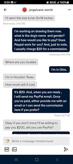 @almostdeepcat commented on my commission post and asked me to dm them. Wanted “5 drawings of their son Mickey’s dog. Was immediately suspicious but wanted to give them the benefit of the doubt.