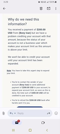 They also sent a fake “PayPal” email from a non official Gmail, pretending to be PayPal and having sent a payment. Then send a follow up fake email claiming additional $200 sent.