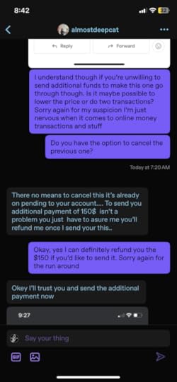 Massive ALERT for other small artists seeking to do commissions right now. @almostdeepcat is a scam account, looking to scam small vulnerable artists out of their money.![]()